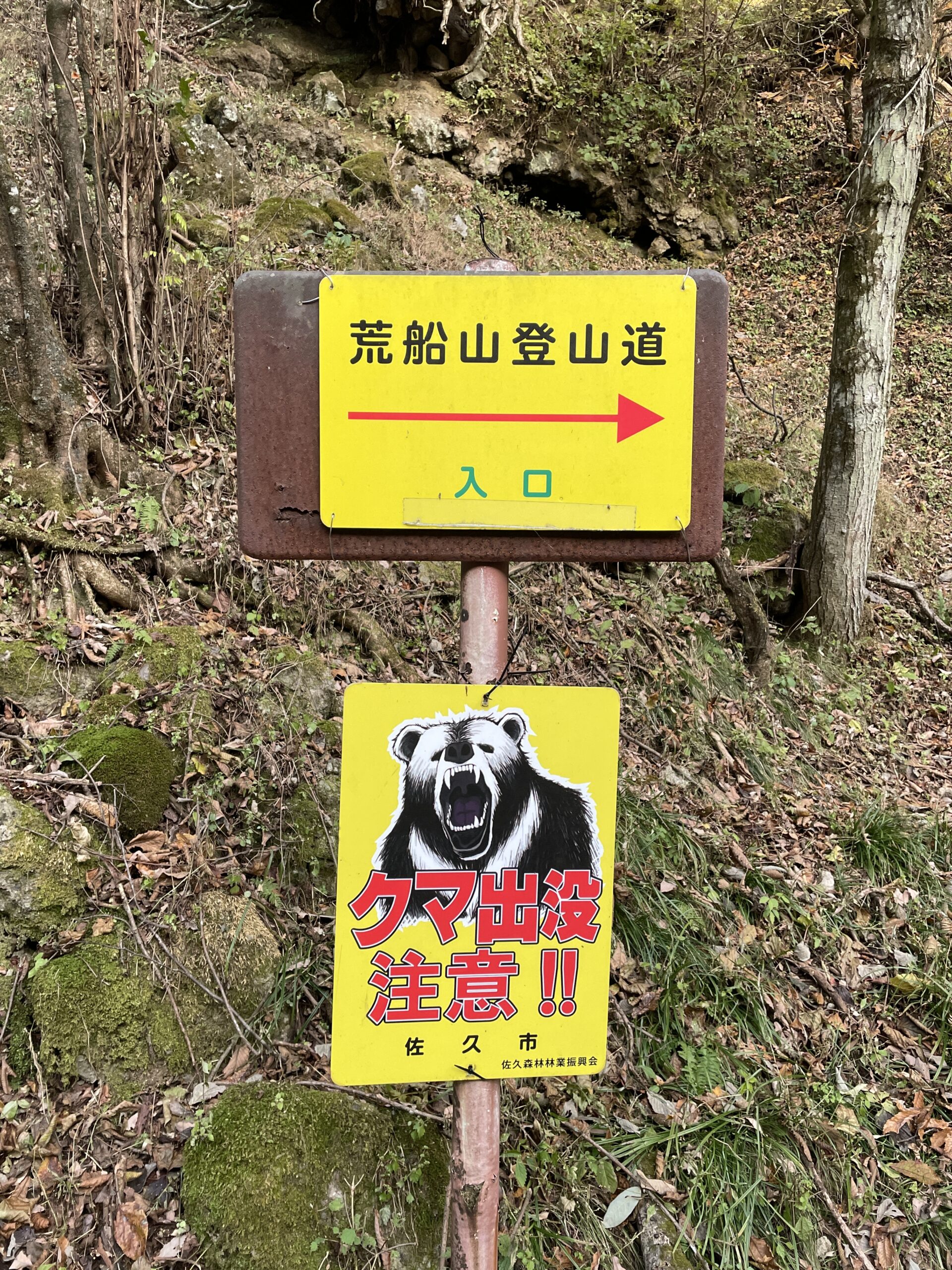 赤に黄色、熊の絵と危険を示すような注意看板がしっかり立っていました。