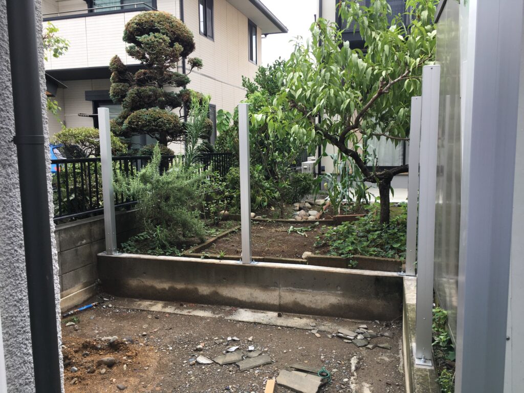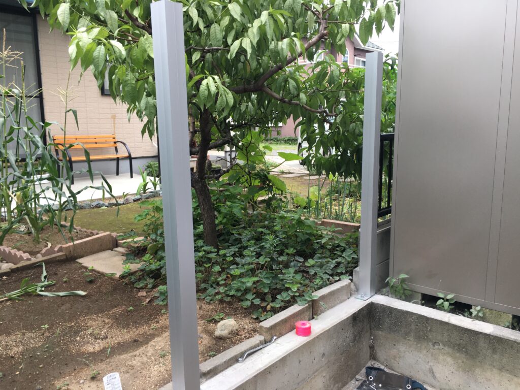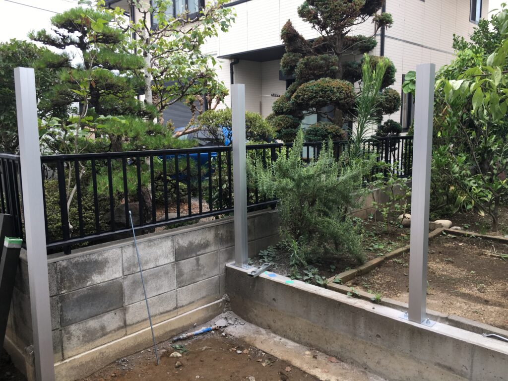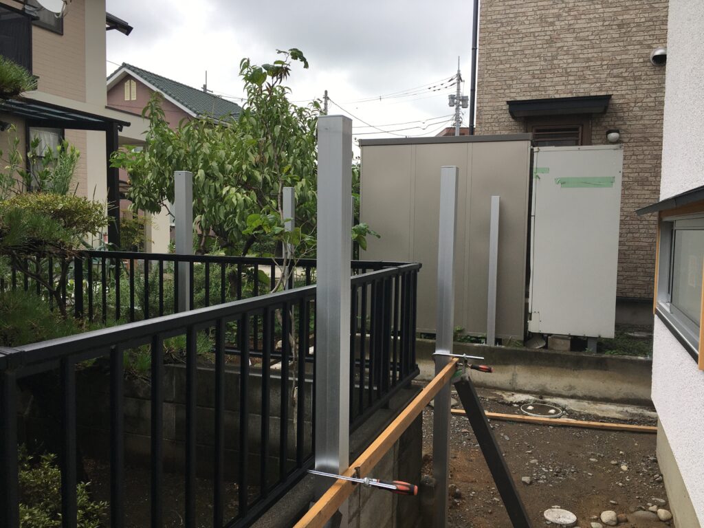 前橋市のI様邸です。木塀用アルミ柱建てを行いました。