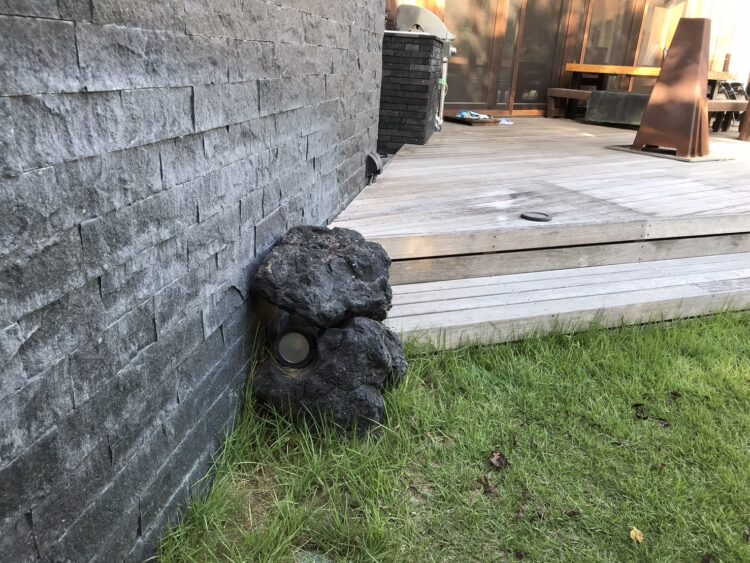 ※これは浅間石に穴あけ加工を施して、器具が目立たなく処理した設置です。
