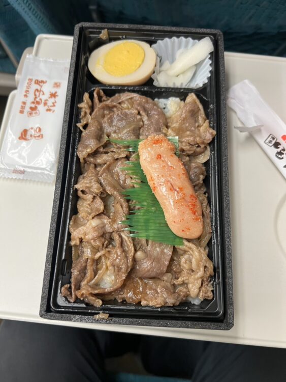 牛めしに明太子が乗った、博多ならではのお弁当!