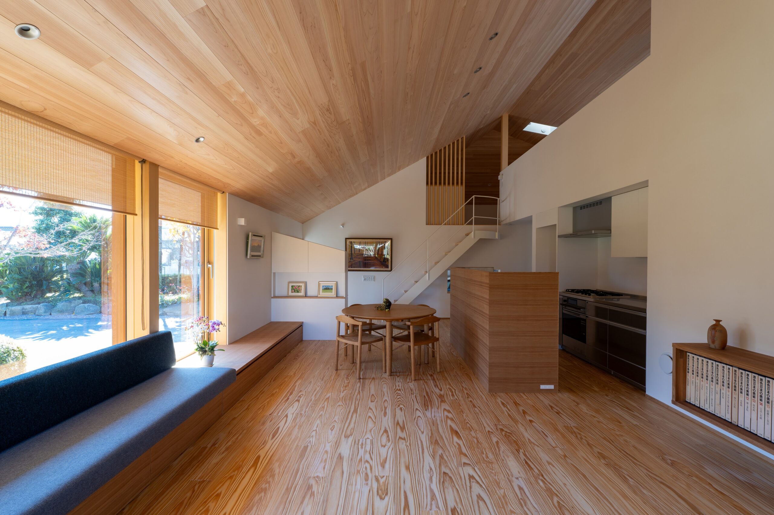 平屋でも+α空間としてロフトを設けたり、高い勾配天井を設けたり、吹き抜けを設けたり。しかし、開放的なだけでは不十分で、家族の程よい間合いや空間の「余白」となる間も必要だと考えています。