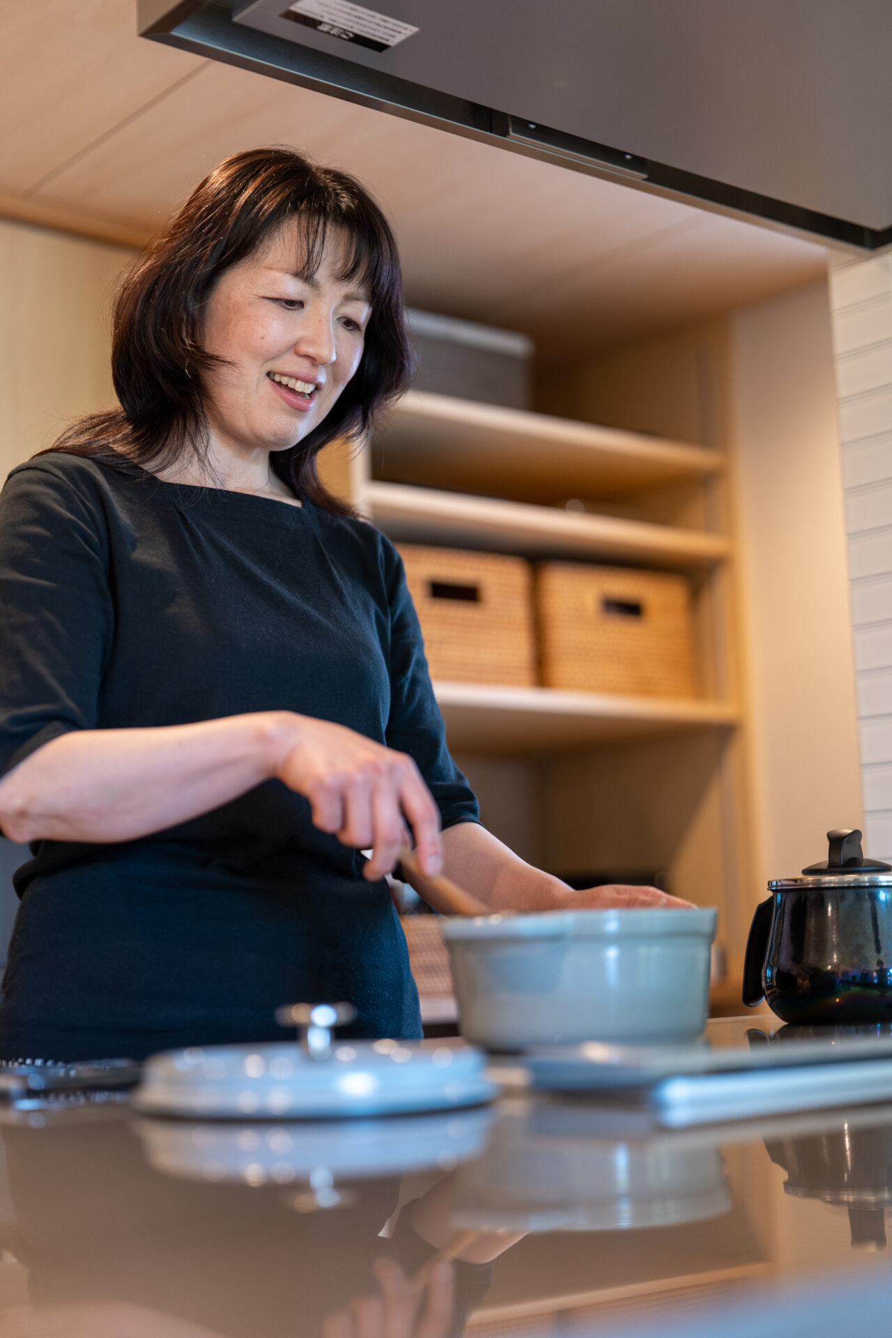住んでみての感想を伺うと、「細かいところまで丁寧なつくりで感動しましたし、空気もとても気持ちいい。暮らしていて嫌な気分になることがない、それが普通なのがすごいと思います。」と話してくれました。自分の家を持つという長年の夢を叶えたMさん。住み始めて1年経った今では市川さんやスタッフさんを招いて手料理を振舞ったりもされているそう。「そういうお付き合いができるのも嬉しい。一生のうちに何回も建てられるものではないから、ヤマイチさんにお願いして本当に良かったです。」