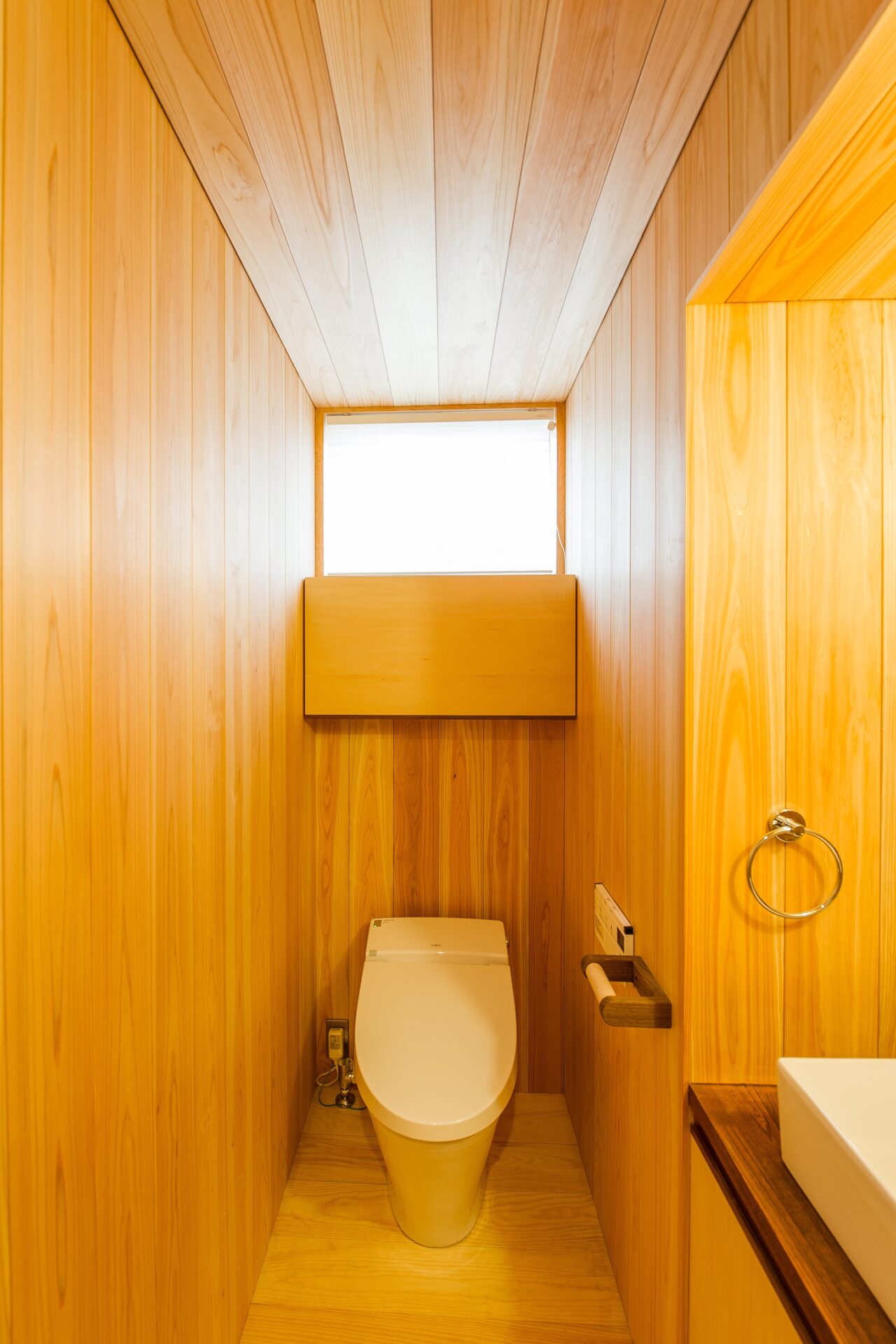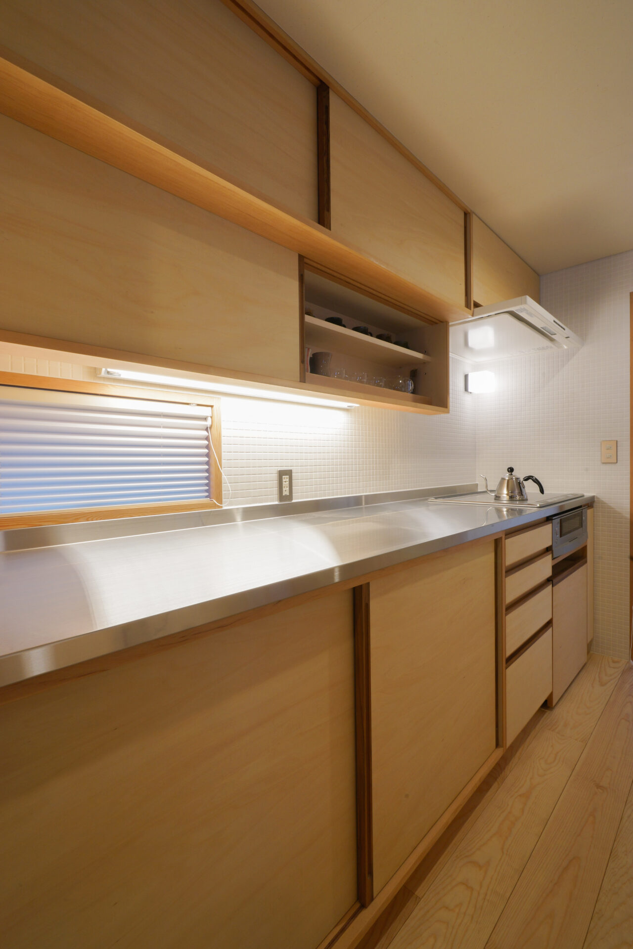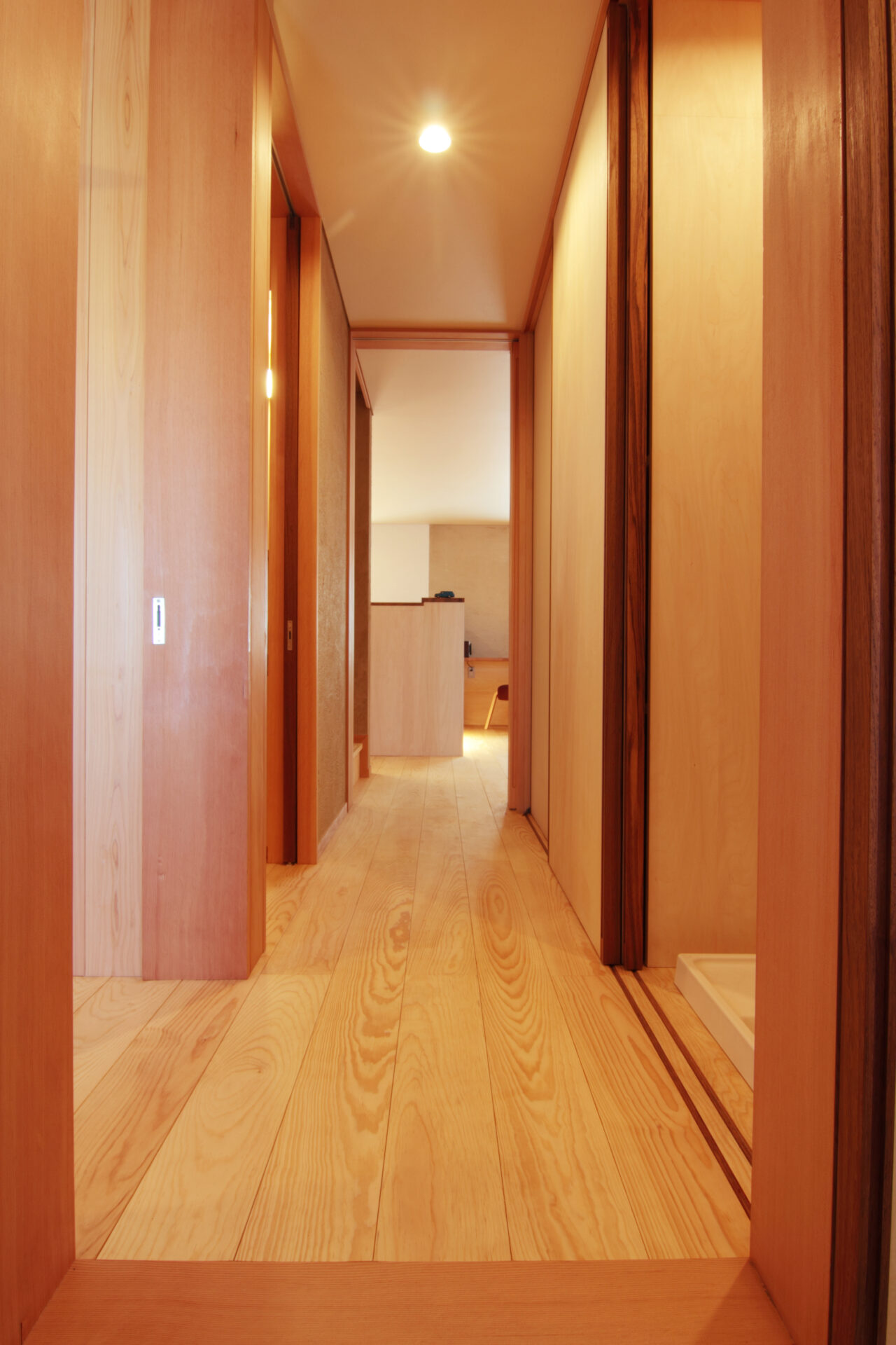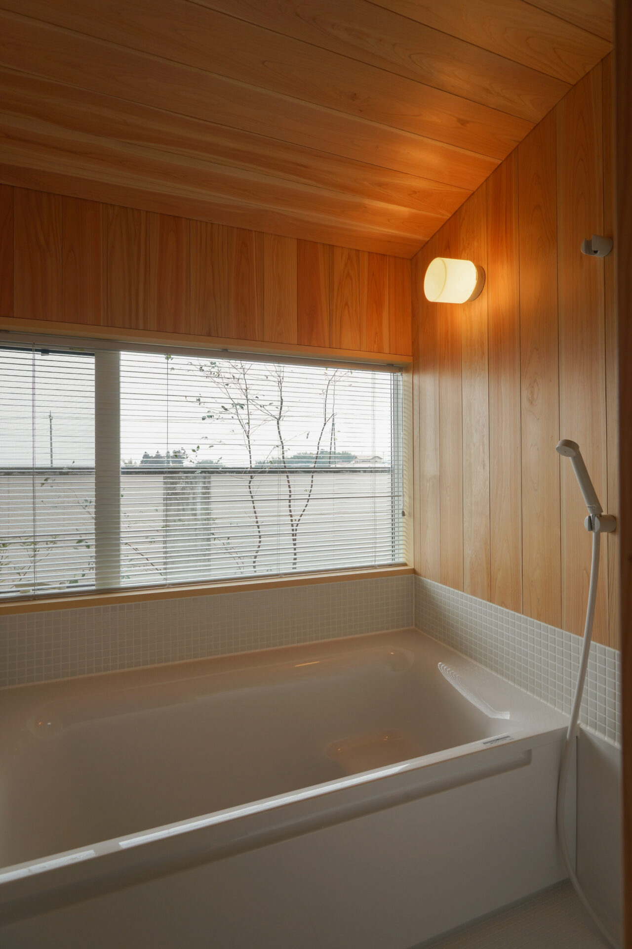 伊礼氏が設計作法として掲げ、ヤマイチも想いを同じくする『ソトからくる心地よさ』に着目した、四季折々の自然を感じて暮らす豊かさのある住まいです。色のトーンを抑えた珪藻土の壁や月桃紙の天井を間接照明が優しく照らす心地よい内装に仕上がりました。