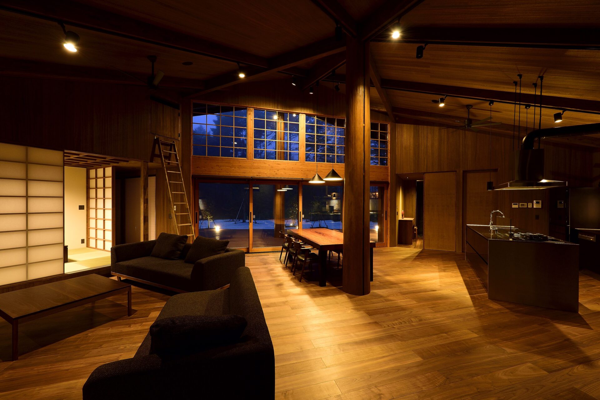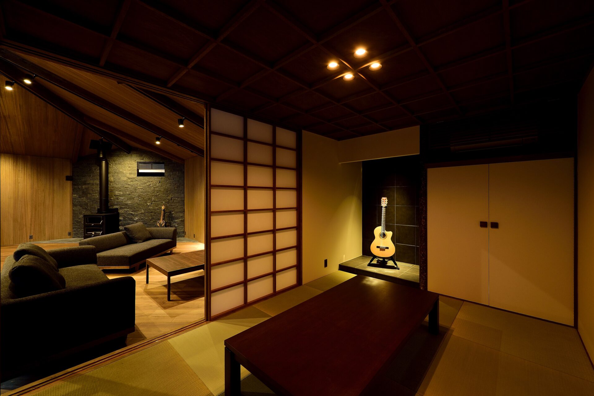 喧噪の都会生活から離れ、時を忘れてゆったりと過ごしたい。そんなお施主様の願いを、趣味である音楽を存分に愉しめる「音楽堂」「ゲストハウス」として形にしました。