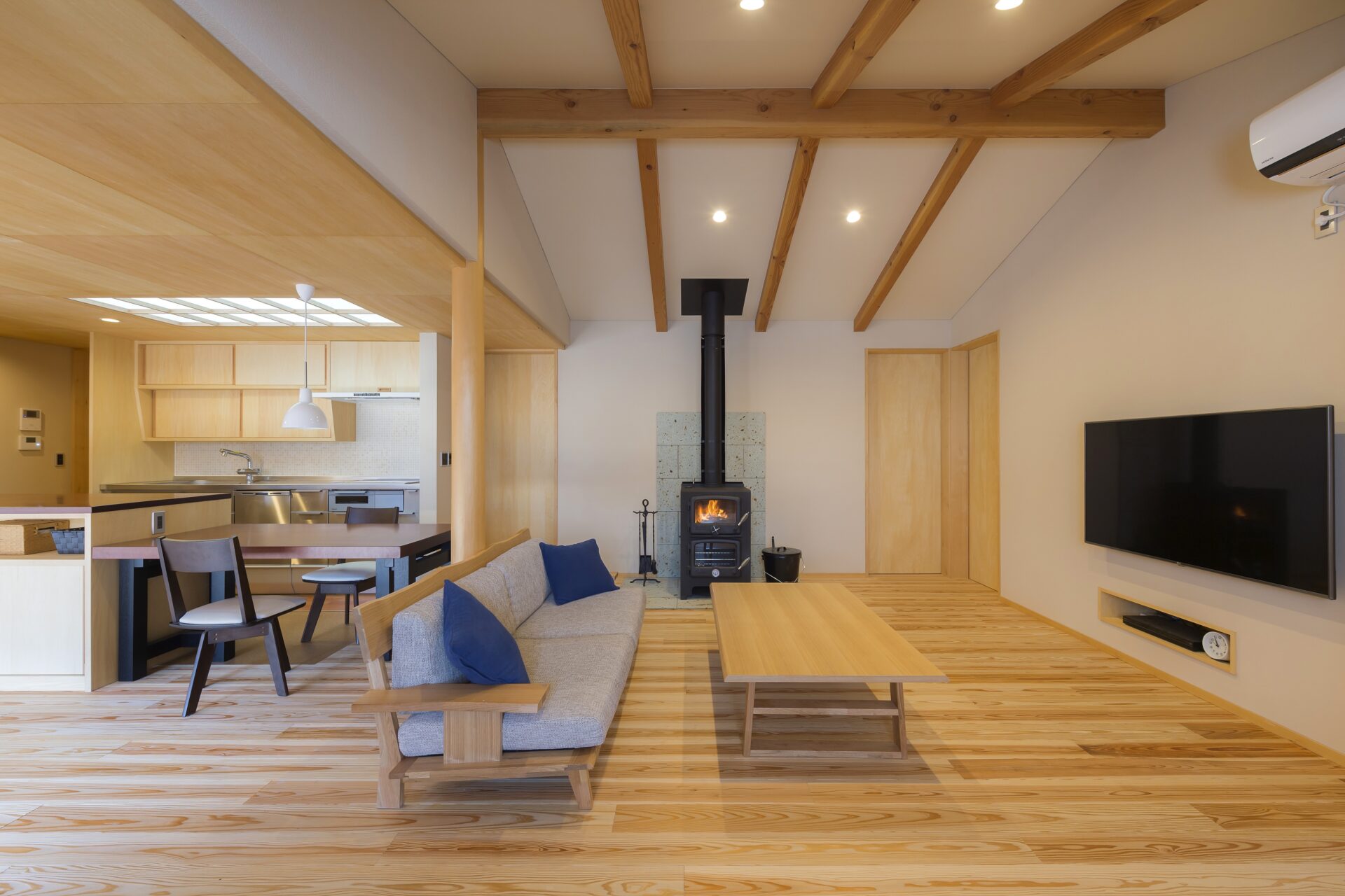 LDK中央に鎮座する薪ストーブや、自転車もゆったり収納できる広々土間スペース、そしてキッチンの天窓など、利便性や心地よさを叶えるためのお施主様のこだわりが詰まった空間に仕上げました。