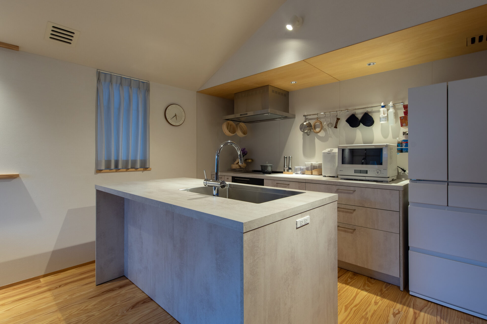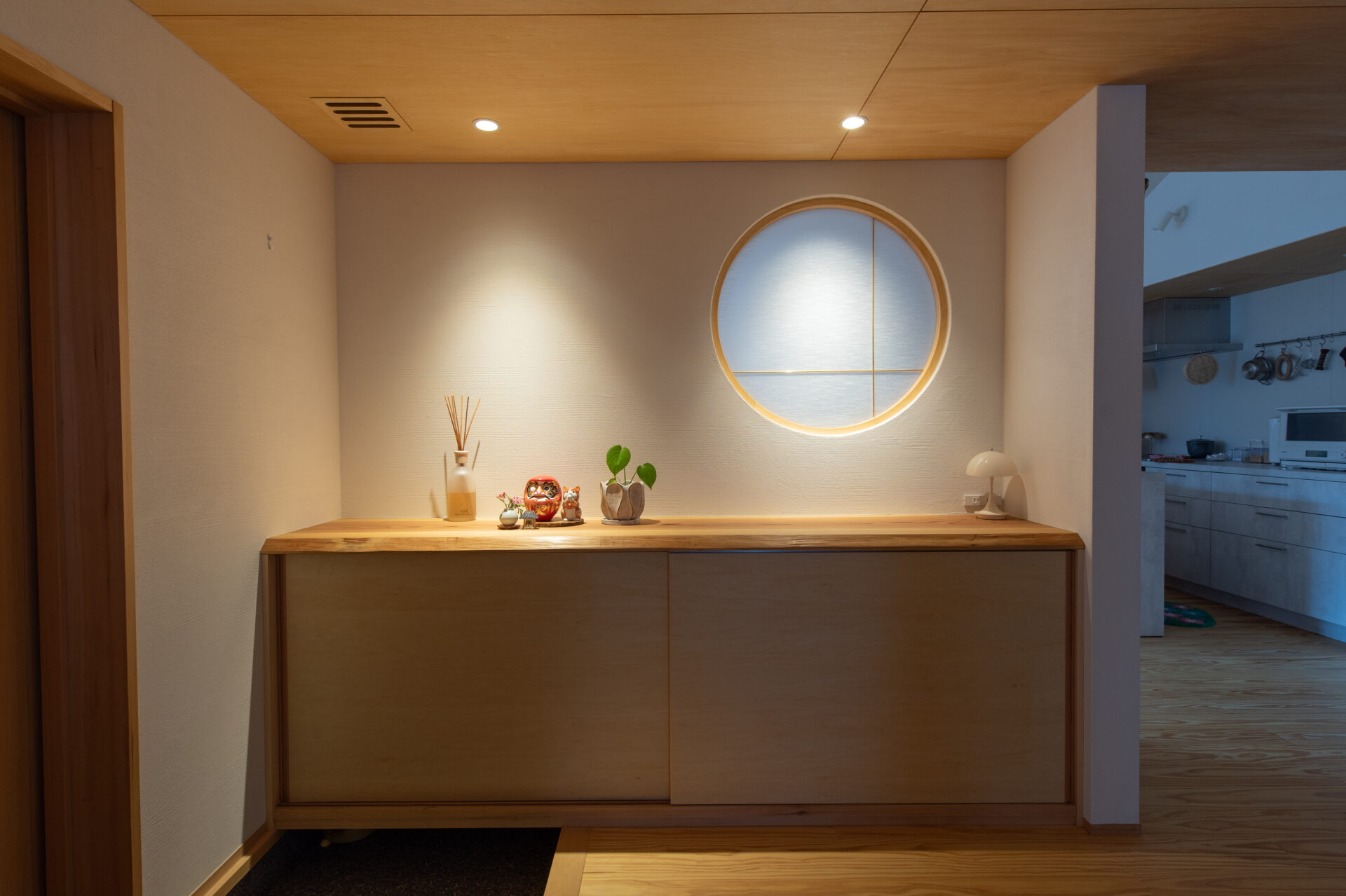 室内は回遊動線でゆるやかにつながりながら、空間ごとに表情を変え、それぞれの居場所をつくりました。和洋折衷をベースに、どこか懐かしさを感じる落ち着いた雰囲気に。